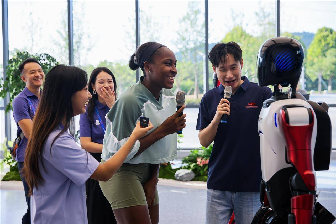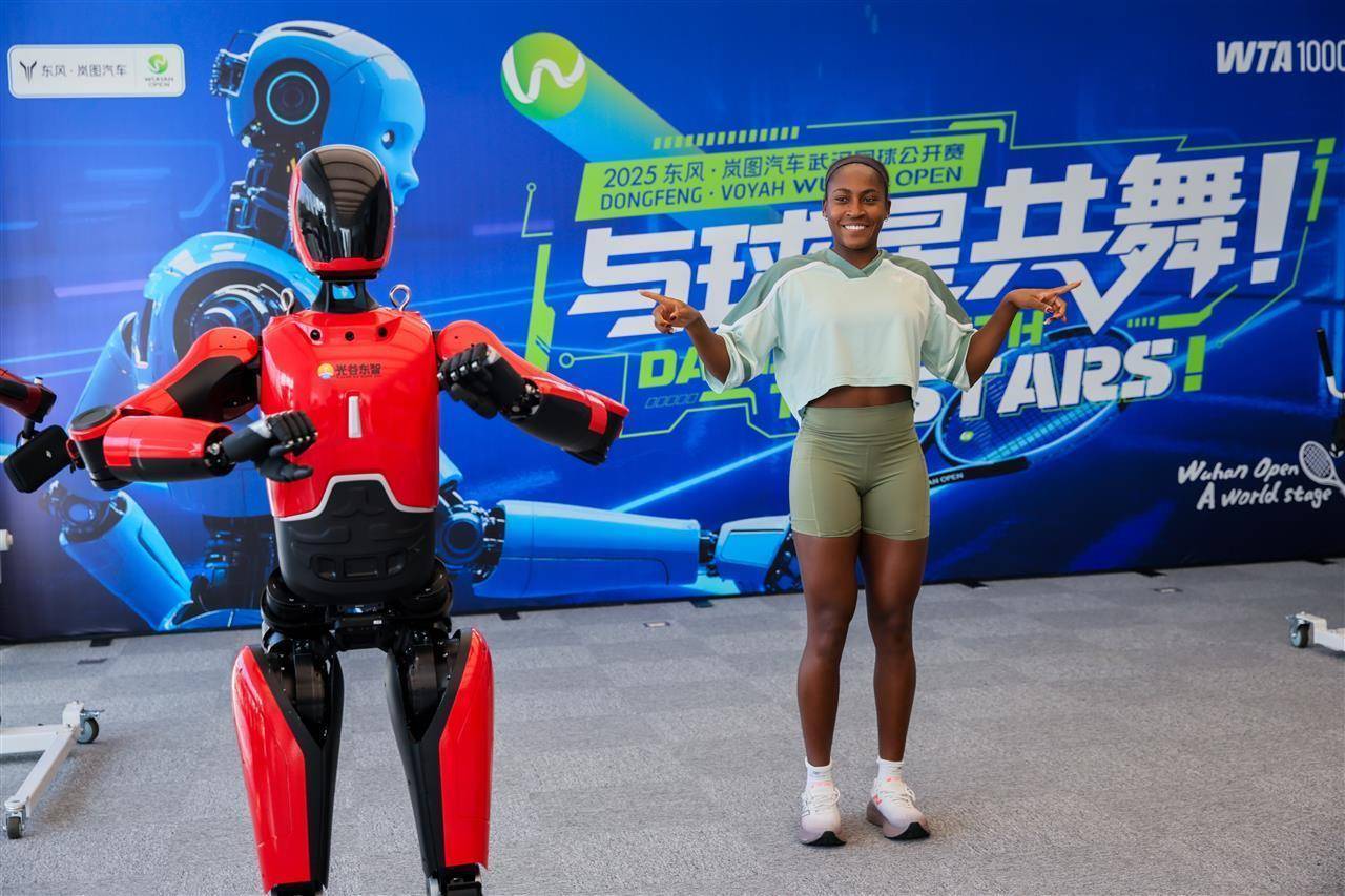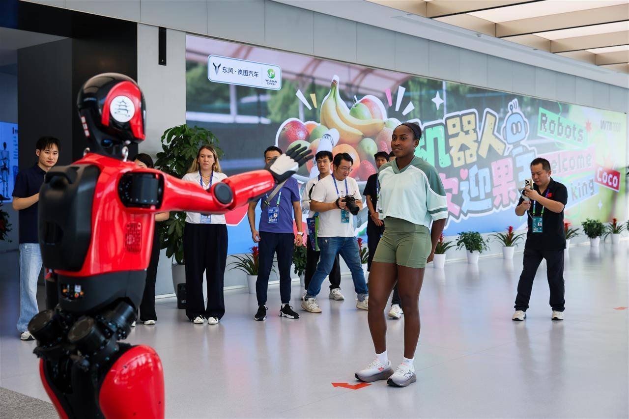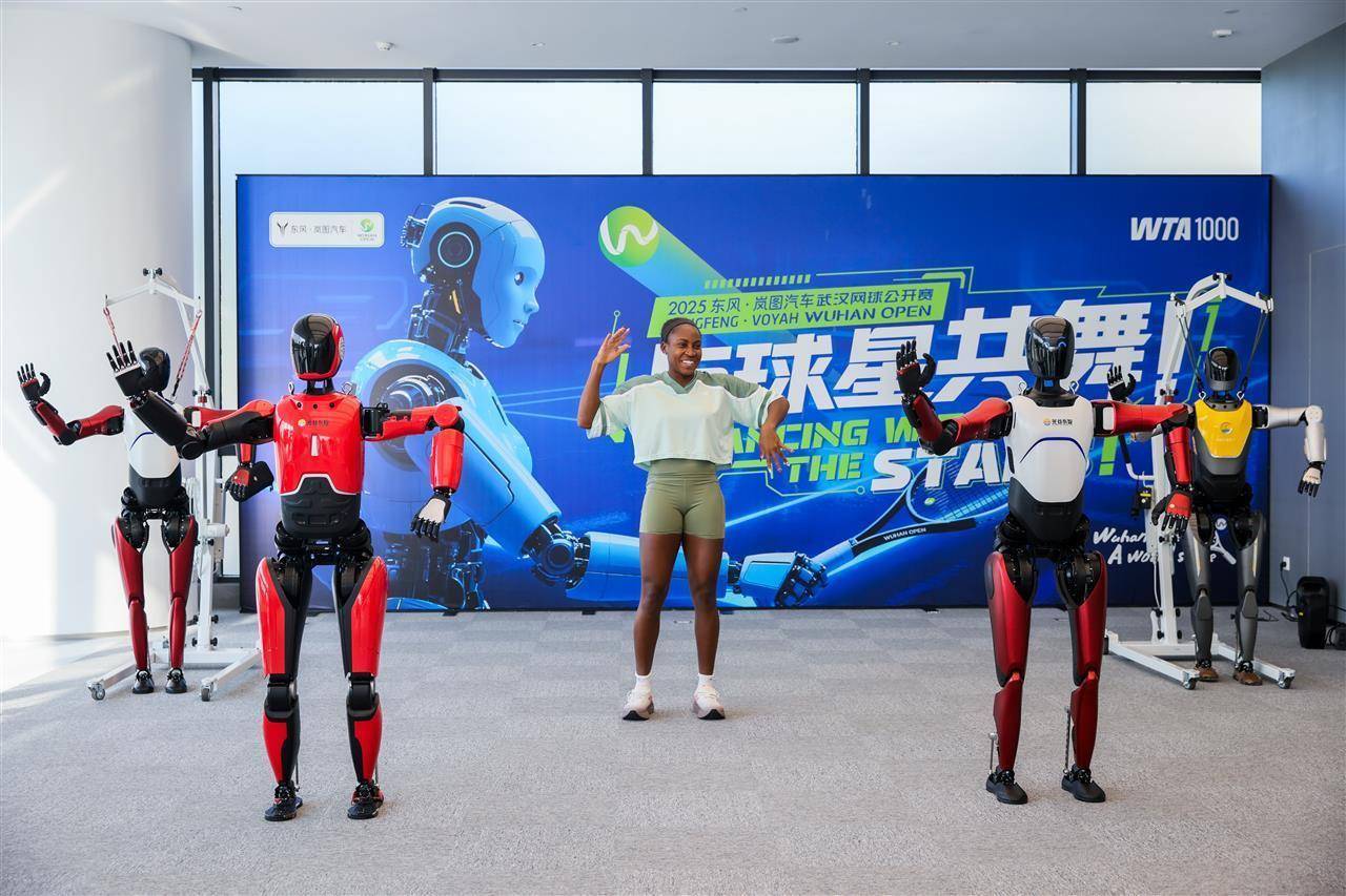 10月6日下午,2025武汉网球公开赛召开媒体日球员发布会,世界第三、本届武网3号种子高芙出席。发布会结束后,高芙到访湖北人形机器人创新中心,与机器人共舞互动。