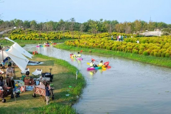 节日期间,漕泾郊野公园水窠景区凭借一场号称最“野”的千人露天长桌“金山宴·水飨宴”,吸引约一千人参与,场面热闹非凡。从湿地T台秀到舌尖上的长桌宴,从水上童趣到草地音乐会,景区融合漕·新鲜市集、童趣天地、共鸣之旅音乐会等特色项目,全方位覆盖不同游客需求,为市民游客提供多元化的游玩体验。