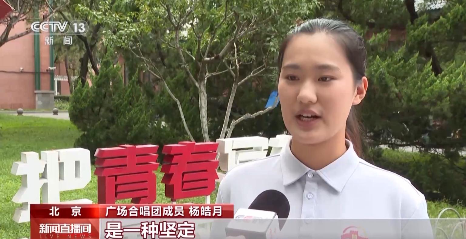 广场合唱团成员 杨皓月:我觉得在天安门广场上可能展现更多是一种严肃,是一种坚定,是一种责任感和使命感,体现出我们新时代青年对先辈们的告慰之情。