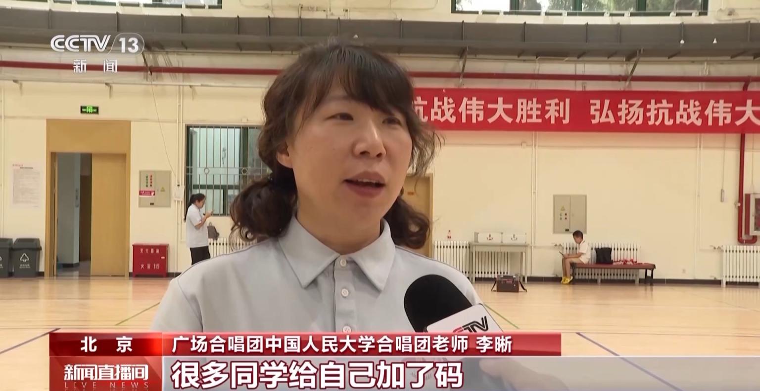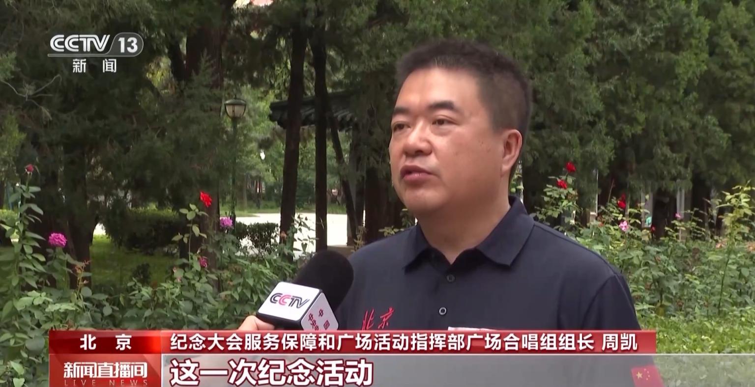 纪念大会服务保障和广场活动指挥部广场合唱组组长 周凯:这一次纪念活动,既是一个美育的熏陶,更是一次难得的思政课。北京的大学生的确展现出了他们应有的风采,展现了那种舍我其谁的家国情怀,那种担当。我们有信心在9月3日广场活动的当天,一定能交上一份满意的答卷。